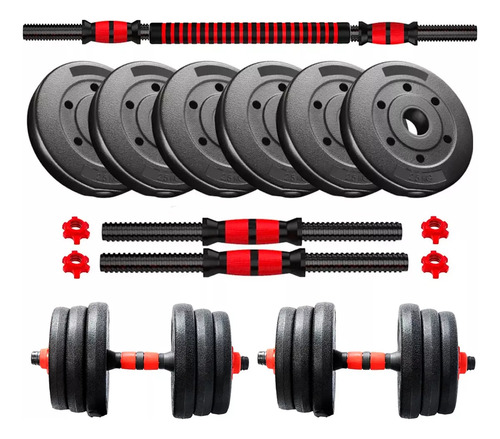 - 25kg en Discos = 2 discos de 2.5 kg + 4 de 5 kg