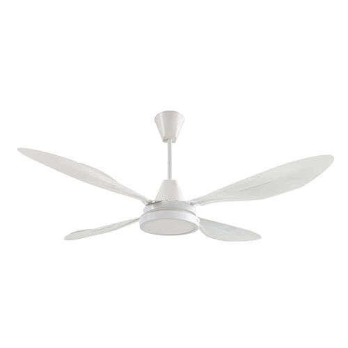 Ventilador de techo con plafón LED plano. Potencia máxima: 65W. 5 Velocidades: 120 a 240 rpm. Con llave de pared. Motor potenciado con doble rodamiento blindado y termoprotegido. 4 Palas metálicas. Diámetro: 120 cm.